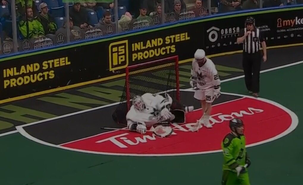 Staunch team defense and exceptional goalie play from both teams was the story of the remainder of the third quarter, until 3:36 on the clock, when Mark Matthews scored his third of the game, beating Landon Kells on a power bouncer shot to the low-right corner. The Las Vegas Desert Dogs netminder woukd redeem himself during the final seconds of the third, making a spectacular save to deny the Rush. Although playing tough and focused, Las Vegas headed into the fourth victim of a 12-8 deficit.