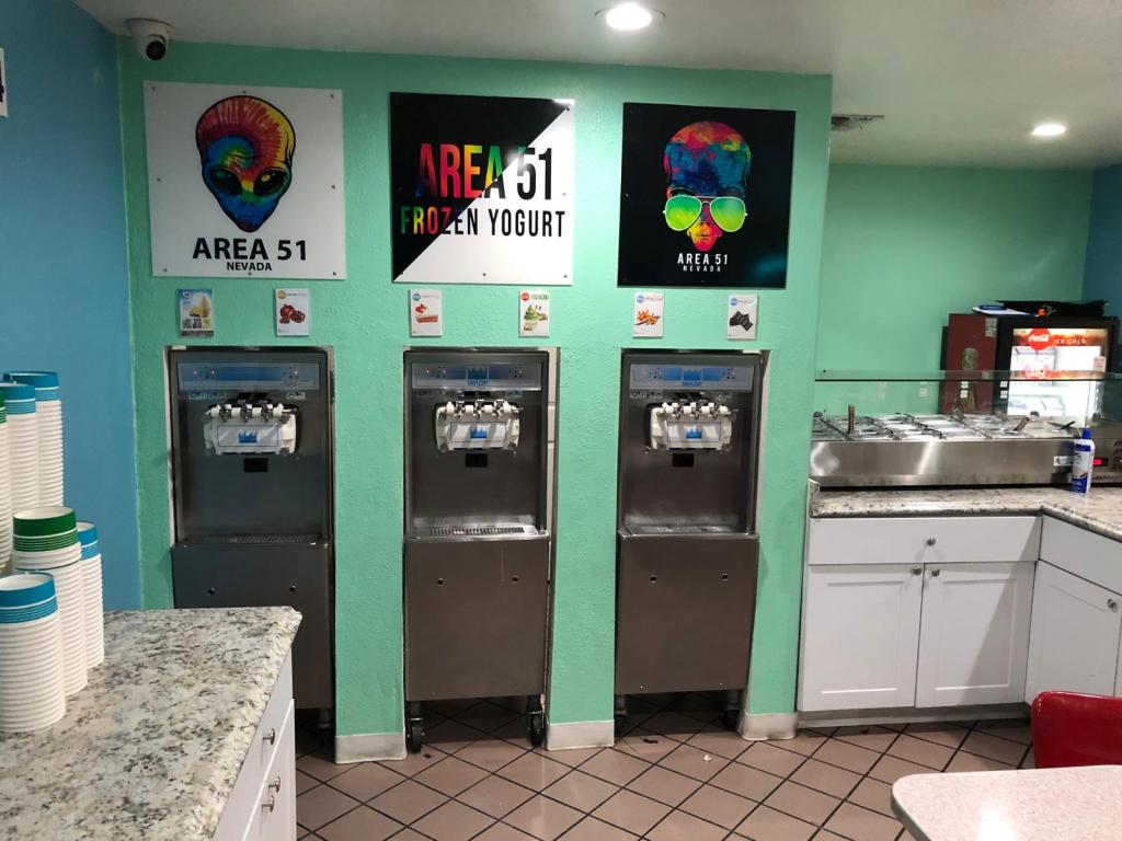 Adjacent to the Alien Center is a charming 50’s style diner that offers a nostalgic trip back in time. The retro décor, complete with checkered floors, red vinyl booths, and a jukebox playing classic hits, creates a warm and inviting atmosphere. The menu features all the diner staples, from juicy burgers and crispy fries to creamy milkshakes. However, what sets this diner apart is its selection of vegan yogurt and ice cream.