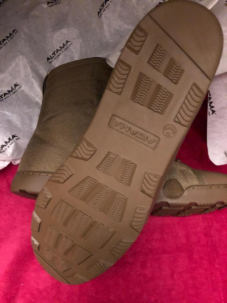 Opening the box reveals the boots neatly packed with protective tissue paper. The boots themselves are the perfect shade of coyote brown, a versatile color that blends seamlessly into both desert environments and urban settings. First impressions of the boot are impressive—it’s clear that Altama has poured its expertise into crafting something rugged yet practical. The boots feel sturdy in hand, and you immediately notice their solid construction and lightweight feel.