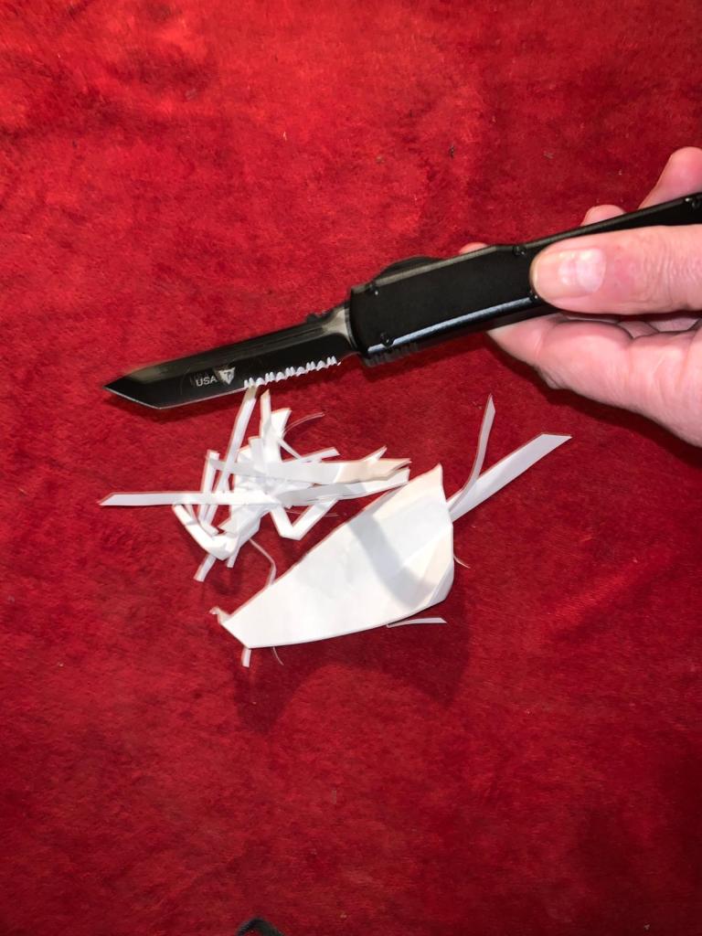 Slicing through paper is often the ultimate test for a knife’s sharpness. The Patriot Tactical Overwatch easily glided through a standard sheet of paper with no tearing, fraying, or hesitation. The precision of the cut was impressive, showing off the blade’s sharpness and the precision of its grind.