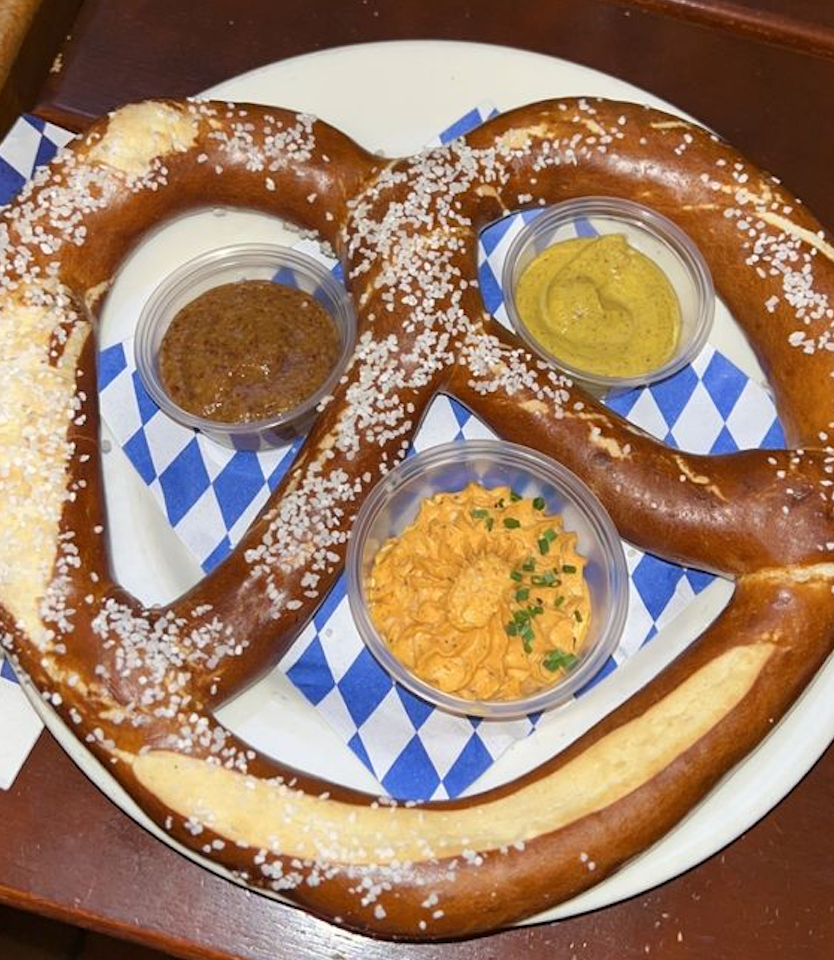 Start your meal with their iconic giant pretzels, served warm with mustard and obatzda (a creamy cheese spread). These pretzels are soft on the inside, perfectly salted, and a delightful introduction to the feast ahead.