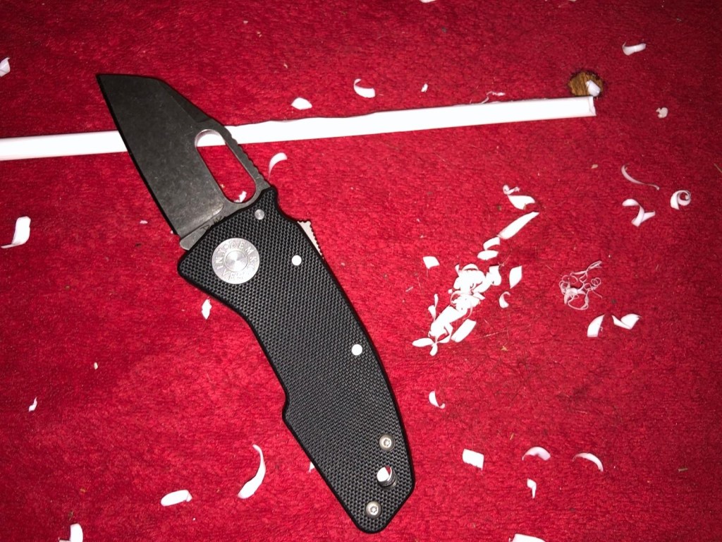 When cutting through hardened plastic materials, the blade maintained its sharpness and showed no signs of chipping or dulling, highlighting the durability of CPM 20CV steel.