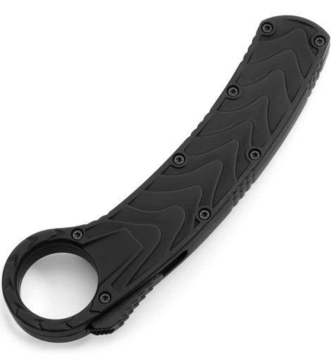 What sets the Talon OTF Karambit apart from many knives is its ergonomic build and aggressive stance. The handle is constructed from anodized textured aluminum, which provides not only a firm, slip-resistant grip but also a modern, military-inspired look. The finger ring, a signature feature of any karambit, adds an extra layer of control, allowing you to retain grip during combat scenarios or precision cutting.