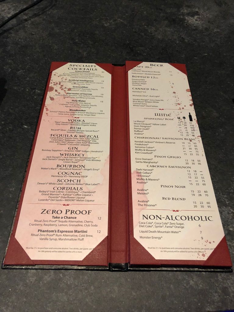 Some cocktails are served with a theatrical flourish, arriving at your table in smoking chalices or bubbling glasses that evoke scenes from a mad scientist’s lab. Others incorporate bold colors — blood-reds, deep purples, or ghostly whites — to enhance the chilling theme. The drinks are perfect for visitors looking to sip something unique while enjoying the darkly festive ambiance.