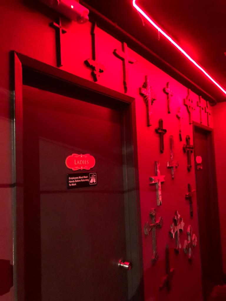 It’s clear that every inch of the restaurant has been designed with passion for horror culture. Whether you’re a fan of The Exorcist, Friday the 13th, or The Conjuring, you’ll find nods and Easter eggs scattered throughout the space.