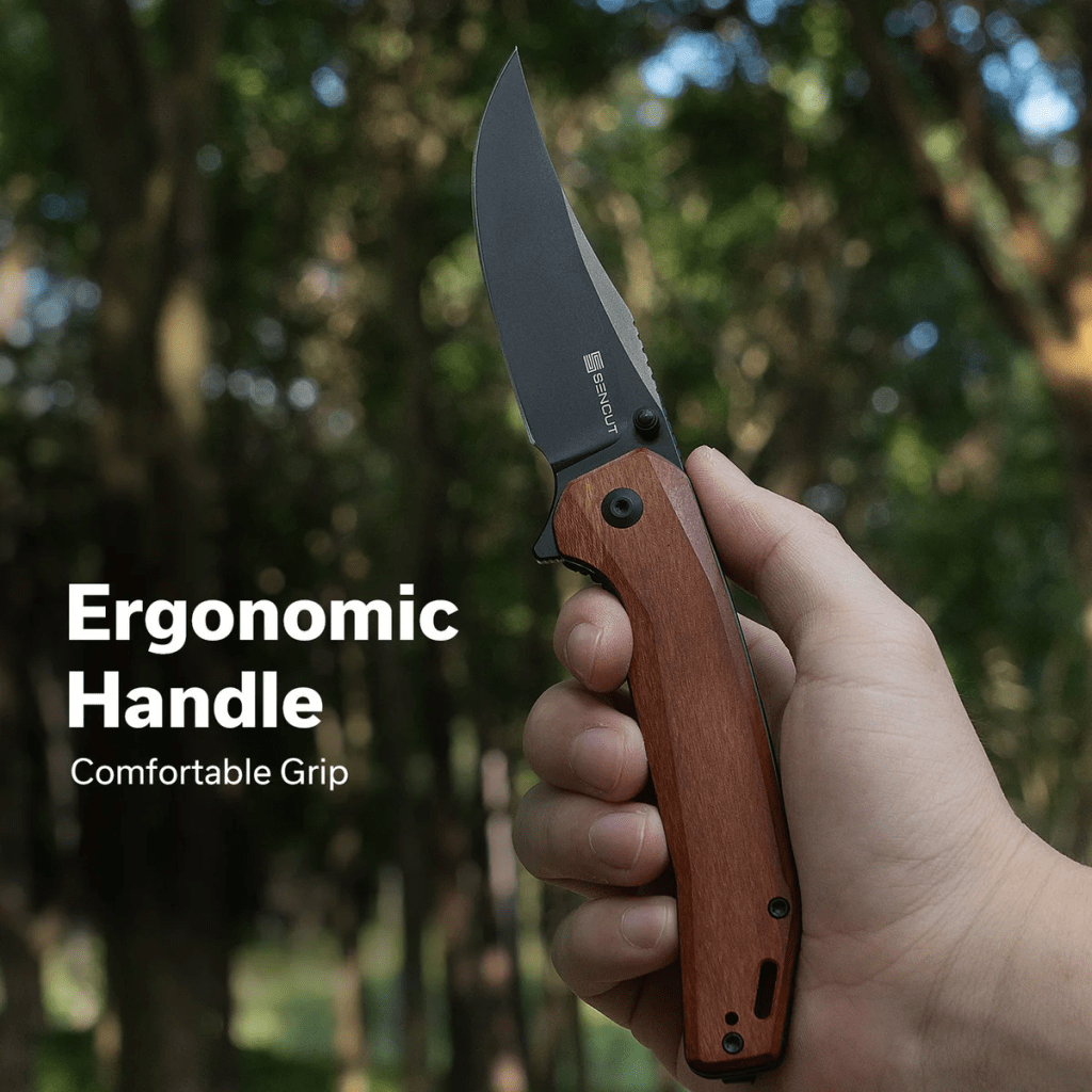 The SENCUT Vornix S25038-3 stands out in the world of budget-to-midrange EDC knives. It combines warmth and elegance from its Guibourtia wood handle with modern engineering, a sharp 9Cr18MoV blade, and a deployment system that feels buttery smooth.