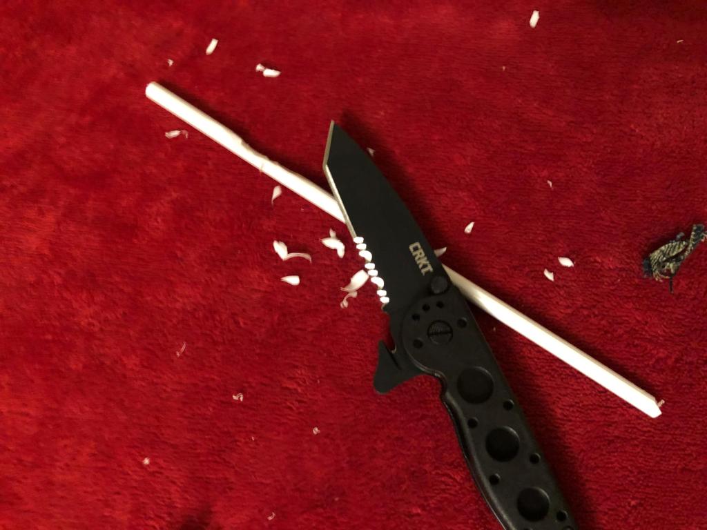 To fully evaluate the CRKT M16®-12Z, the knife was subjected to a series of real-world cutting tests designed to reflect everyday carry use, emergency utility, and light tactical applications. With its tanto blade, Triple Point™ serrations, and rigid InterFrame construction, the M16®-12Z proved itself as a dependable working knife built for durability and control.