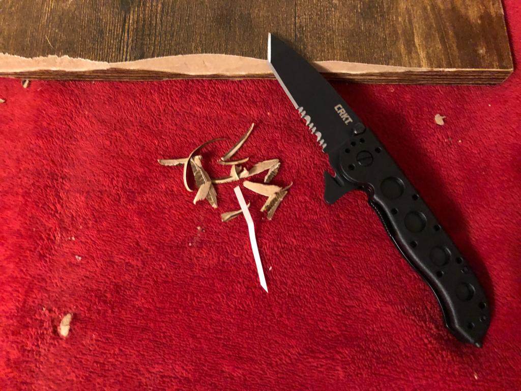 Soft pine wood was used for light carving and notching. The blade performed well for shallow cuts and controlled scoring. Though not a bushcraft tool, the M16®-12Z handled light wood work competently, supported by its rigid handle and secure grip.